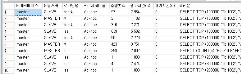 select [쿼리 HASH 값],[데이터베이스],[요청서버],[로그인명],