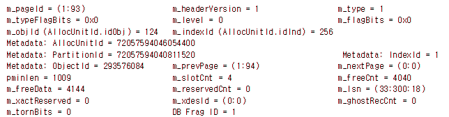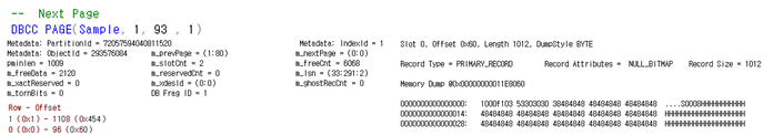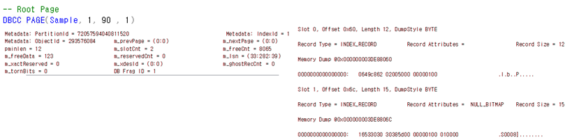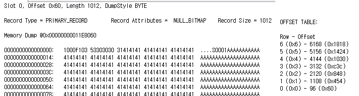 - Slot : 페이지 내 Row 번호 / Record Size : 해당 Row의 크기
