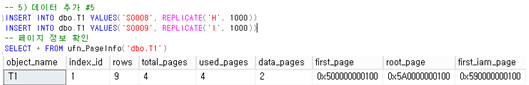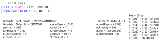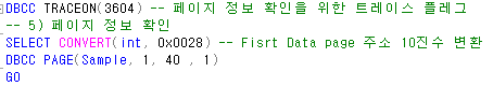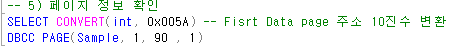 - 8KB의 데이터페이지(0x5) 1개에 Row 1개 확인