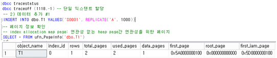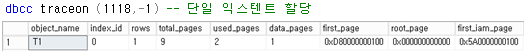 - Used_pages가 2개인 이유 : 힙은 IAM(Index allocation map) page를 갖게 됨