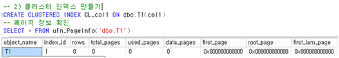 - Index_id : 1 = 클러스터 인덱스