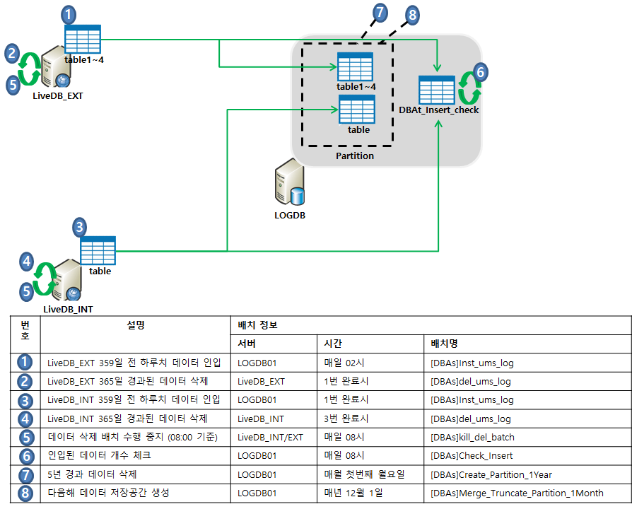 | 6~7 | adhoc | Log서버내 5년경과된 파티션 파티션 merge |