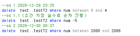 Test.dbo.TestT2내 컬럼 Num 1~5 / 2080~2086 삭제
