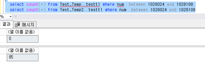 select count(*) from Test_Temp..testt1 where num between 1028024 and 1028108 --0