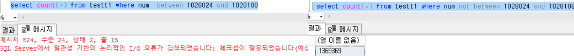 select count(*) from testt1 where num between 1028024 and 1028108 --에러발생