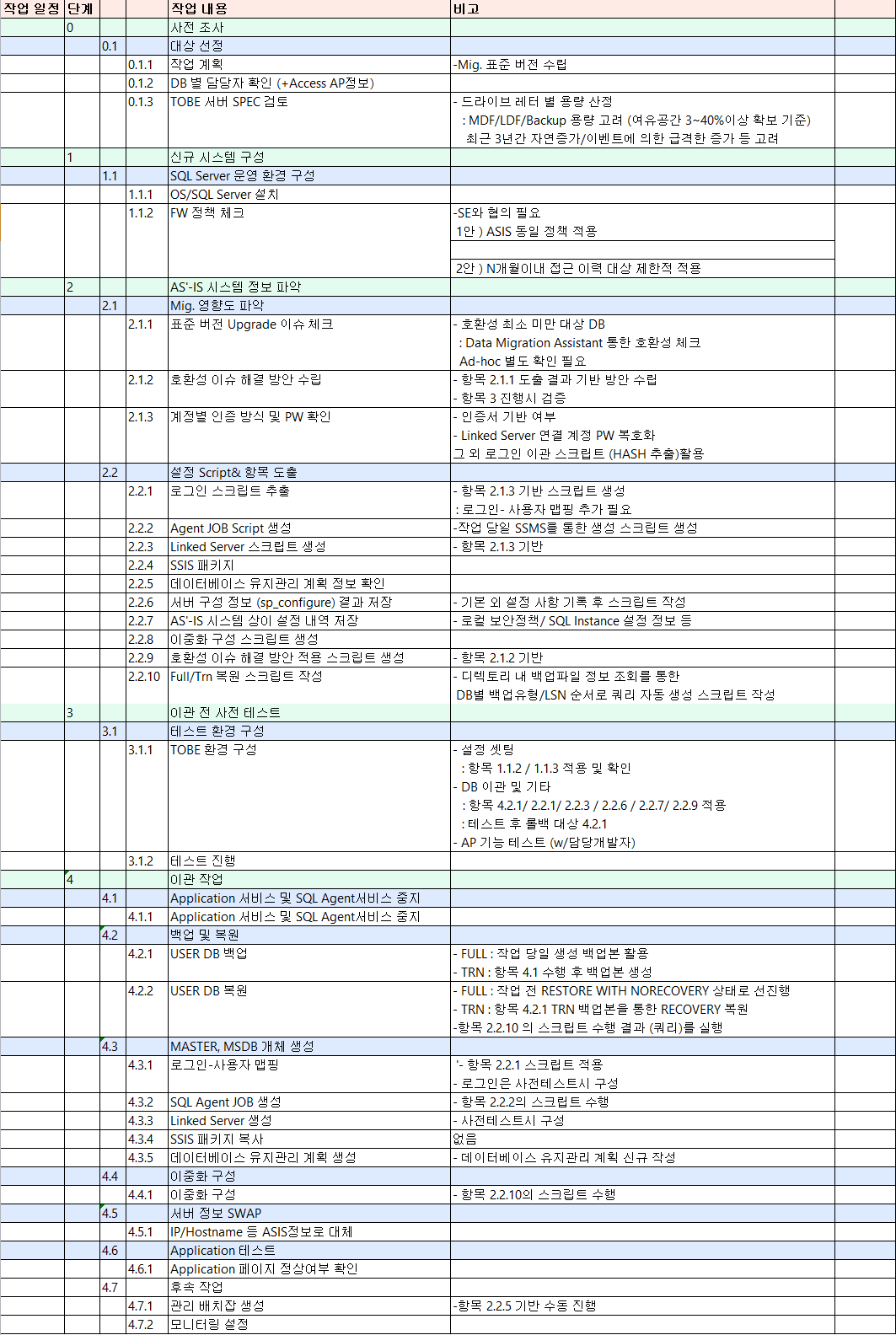 20년 8월즈음에 SQL Server 2008 개발환경 EOS 이관 계획 수립시 최초 작성했던 WBS(?)