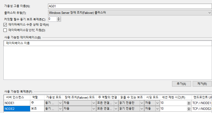 - AlwaysOn 그룹 내 가용성 복제본 - 'NODE2 가용성 그룹에 조인' 클릭